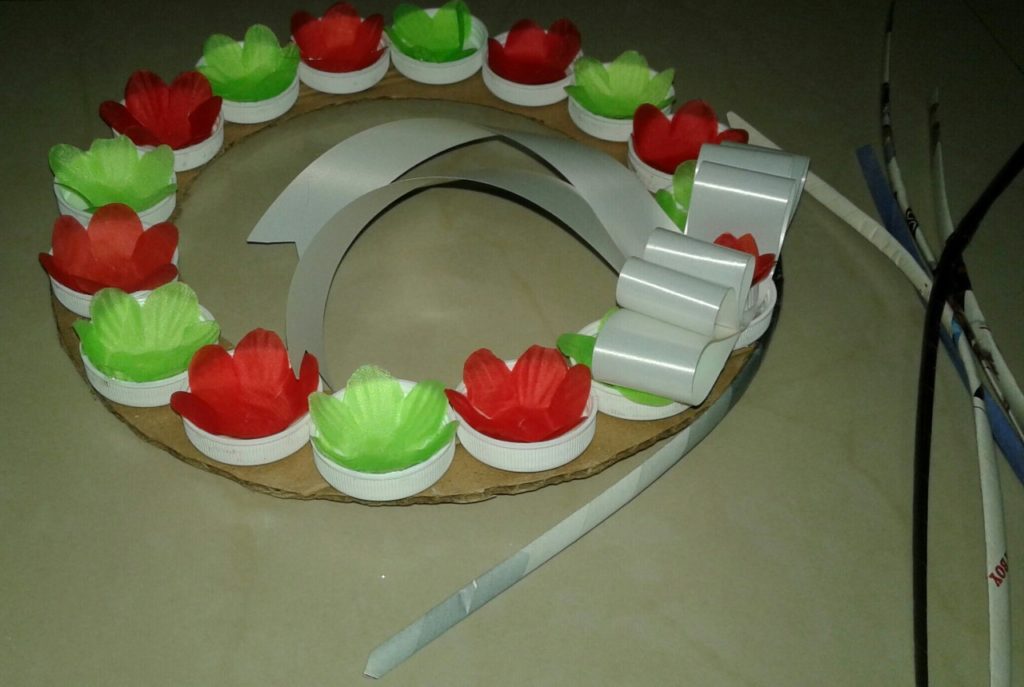 La corona es una linda decoración que puede ser colocada en diferentes lugares de la casa tanto en la parte interna como externa. La elaboración es sencilla, buscando siempre opciones que estan a su alcance para no tener que hacer gastos innecesarios. Reciclemos juntos y aportemos un granito de arena cuidando el medio ambiente. La idea que les traigo es una corona hecha con tapas de botellas…Es increíble lo lindo que puede quedar! A continuación les comparto la lista de materiales.
