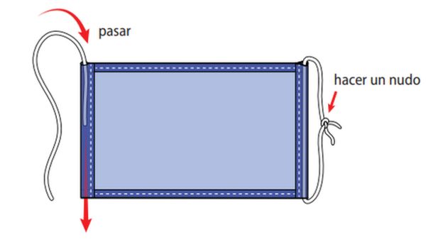 Para hacer mascarillas de tela se requieren dos rectángulos de tela de algodón de 25,4 x 15,24 (10 x 6 pulgadas). Debe ser algodón de hilado apretado, como el de las sábanas de ese material.