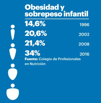 En el caso de Costa Rica la prevalencia de obesidad y sobrepeso también marca a los niños, y es que de los menores en edad escolar (de 6 a 12 años) un 34% está por encima de la línea de peso y en menores de cinco años la cifra es de 7%.