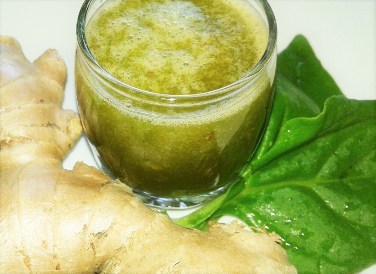 La bebida contiene espinaca, jengibre, papaya y apio. Licuar con agua y endulzar con una cucharada de miel de abeja. Recuerden ser cuidadosos con las cantidades que vayan a tomar ya que puede actuar como un laxacte. Tomar este tipo de bebidas de preferencia en las mañanas.
